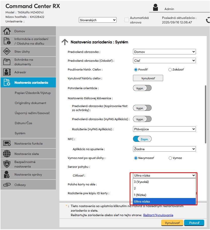 Pre nové modely (ultra nízka = minimálna citlivosť) :