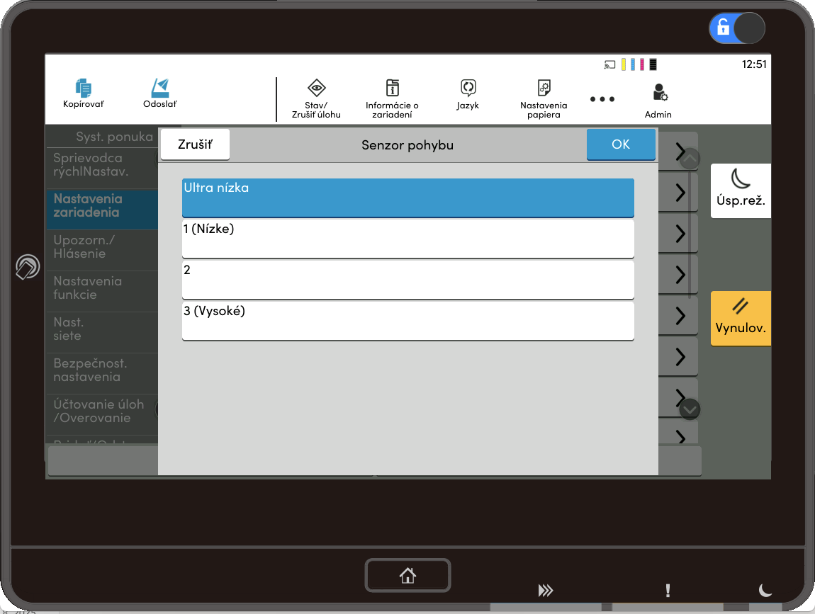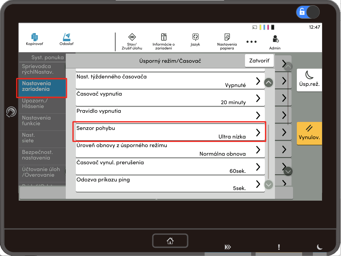 Pre minimálnu citlivosť senzora vyberte "Ultra nízka".